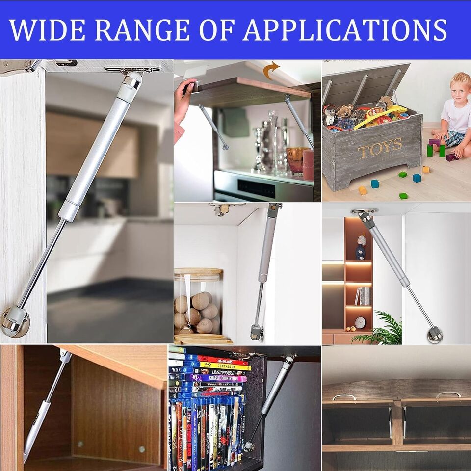 - :Molla a gas per mobili ha un effetto tampone sufficiente, in modo da consentire l’apertura e la chiusura dell’armadio in modo fluido e lento, evitando così che l’anta dell’armadio generi un forte rumore o addirittura si danneggi in seguito a un urto violento e prolungando la vita utile del mobile. Impedisce efficacemente che l’anta dell’armadio sbatta, evita di pizzicare le dita e protegge la sicurezza dei bambini.