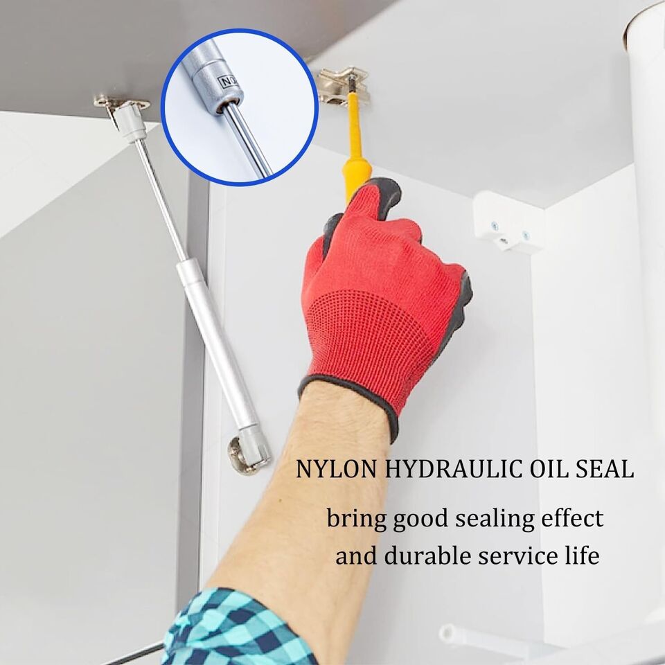 - À: La pistone per ante cucina è appositamente progettata per l’apertura e la chiusura di tutti i tipi di mobili, in grado di ridurre i danni causati dalla forza d’urto sui mobili, ed è uno strumento di protezione dei mobili ideale per la cucina, la camera da letto, il soggiorno, l’ufficio e altre occasioni, adatto per sollevare, fissare e sostenere tutti i tipi di armadi alti, cassapanche e porte di armadi.